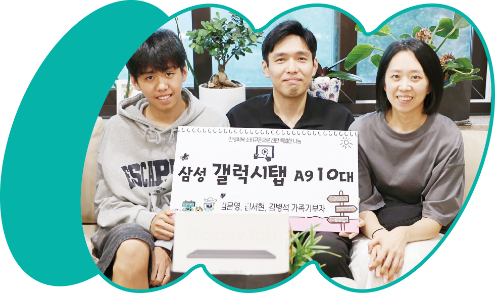 김문영 님 가족의 첫 번째 나눔은 지난 팬데믹 시기 태블릿PC 후원이었습니다. 당시 병석 군이 온라인 수업에 참여하는 모습을 보며 적절한 온라인 기기가 없어 수업에 참여하기 어려운 상황의 아이들이 떠올랐기 때문입니다. 어린 시절 경제적 어려움을 겪으며 공부했던 김문영 님은 아이들이 경제적 상황이나 신체적 불편함으로 인해 시작부터 불평등을 마주하지 않기를 바랐다고 합니다. 당시 재난지원금에 가족 생활비를 보태 태블릿PC 10대를 구매했던 마음 그대로, 올해도 태블릿PC 10대를 준비했습니다. 이번에는 장애아동과 청소년, 그리고 비장애 형제자매들이 사용했으면 좋겠다는 마음을 담았습니다. 가족의 결정과 실천 과정들이 병석 군에게도 소중한 배움과 경험이 되었을 겁니다.
